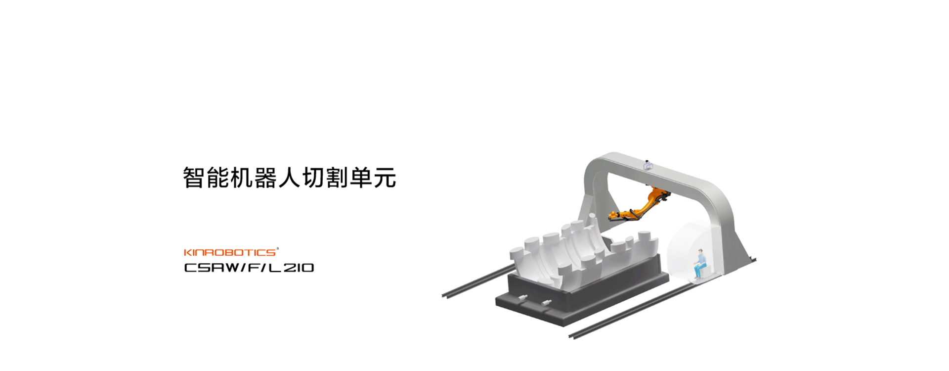 机器人切割单元是针对中大型铸件,利用机器人带切割工具对铸件的浇冒口切割而专门设计的产品。设置 X 轴增大机器人的可达性。龙门框架结构和倒装机器人的组合使用,提高加工过程的灵活性,机器人末端采用了组合切割头的设计,可按工艺需求在片切割、火焰切割、和激光切割间进行快速变位。使之适应性更强、切割效率更高。工件最大重量120000kg。