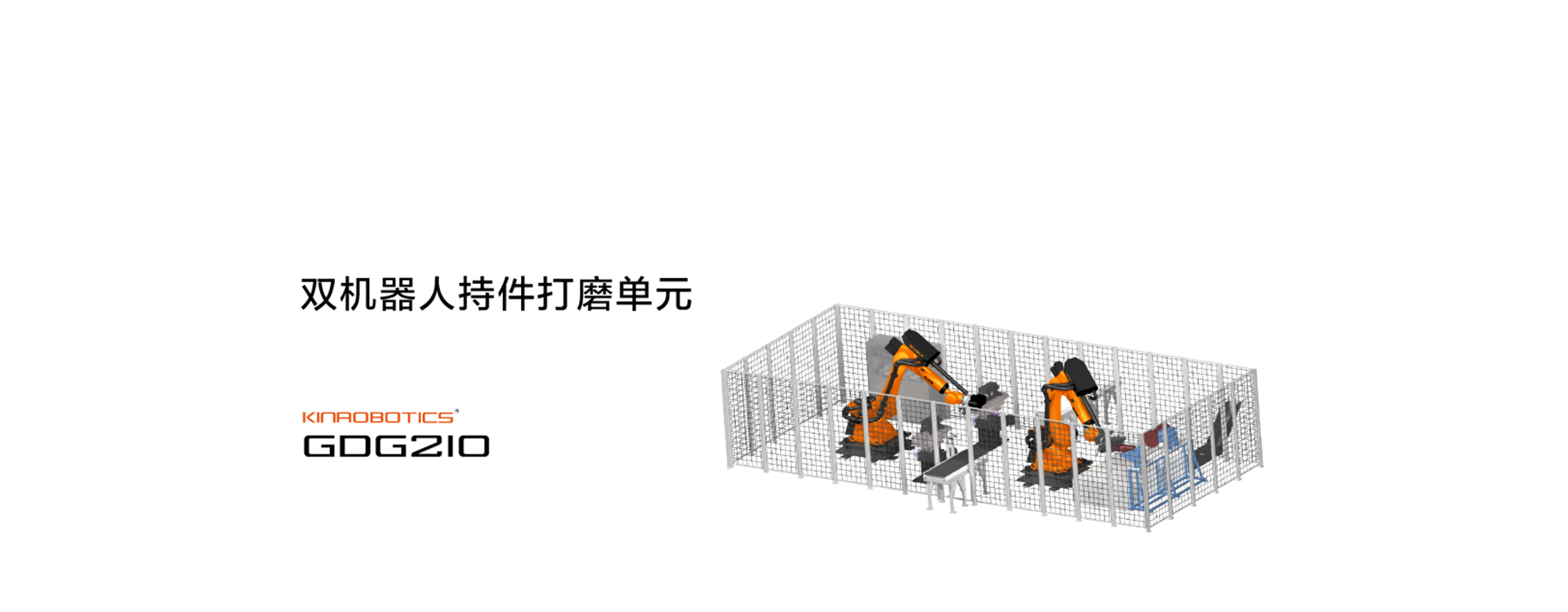 双机器人持件打磨单元主要针对小型较复杂铸件(如缸体、缸盖等),分别利用机器人持刀具和持工件多工序对铸件的毛刺飞边的打磨清理专门设计的清理单元。该单元主要由两台机器人、自动打磨系统、视觉检测系统、打磨动力头、刀库、自转转台、机器人夹具以及上下料输送辊道等构成,由视觉检测系统引导机器人进行自动抓取,机器人持工件利用自动打磨系统进行清理,而后放置于自转转台,完成部分打磨工艺;机器人持工具完成工件其余部分打磨工艺,全自动化完成产品的打磨清理,集标定、生产、检测于一体,具有高效率、高柔性等特点。工件最大质量70kg。