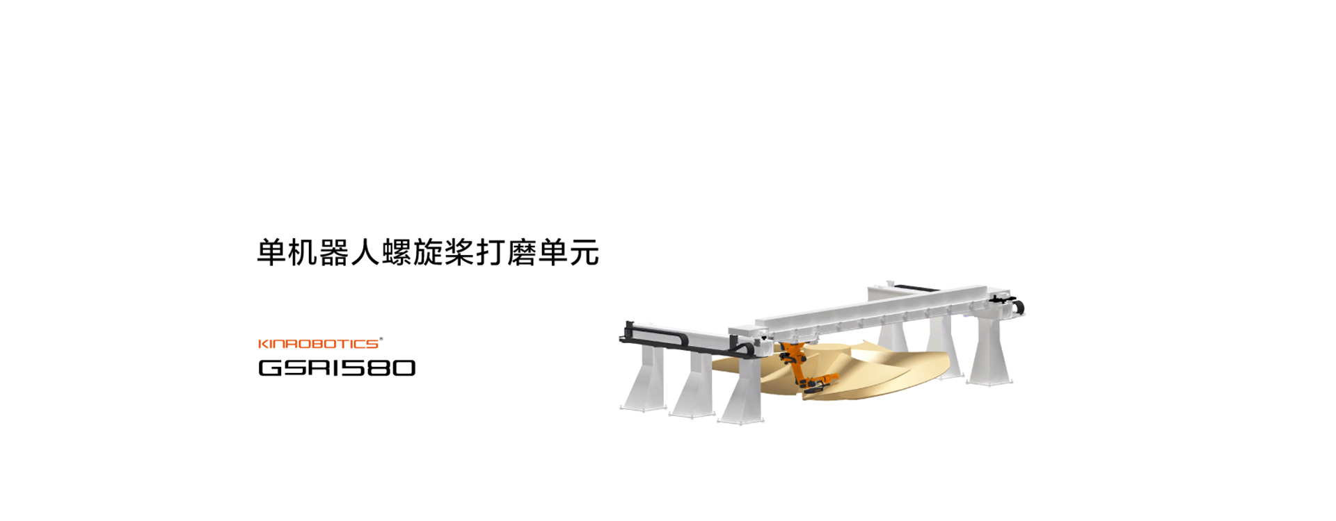 单机器人螺旋桨打磨单元是针对中大型铸件,利用机器人带工具对铸件浇冒口及飞边毛刺打磨而专门设计的产品。是集灵活性,高效率,高柔性的组合。为了弥补机器人的可达性范围,在原 6 个自由度的基础上又增设 2 个外部轴实现8 个自由度。可以允许的最大工件尺寸为机器人可达到范围及 2 个外部轴共同所及范围尺寸。工件最大重量 120000kg。同时两台机器人对同一铸件进行打磨可以大幅度提高打磨效率。